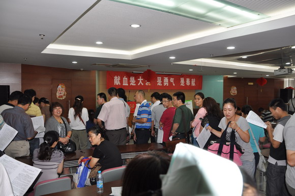 7月19日南京市鼓楼区人民政府组织辖区内人员200余人来到南京红十字血液中心参加无偿献血。虽有炎炎夏日却难挡献血热情,短短一个上午就有150人参加献血,献血量达34100ml之多。其场面让人为之感动。明日鼓楼区还将组织200多人参加献血。