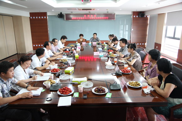 8月13日,新疆克孜勒苏柯尔克孜自治州血站的同行来我中心调研交流。中心党总支书记高潘东、副主任傅强、谈维等领导陪同参观并交流了血液检验及质量管理,成分献血,临床用血管理等方面工作。本次交流,是一次深层次全方位的沟通。双方深入地畅谈了本单位的作法,对相关工作进行了特点介绍与相互学习,这将对双方的工作产生一定的促进作用。