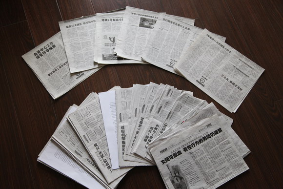 现年57岁的史先生是位老献血员,他的爱好之一就是将中心每期刊登在《金陵晚报》上的“南京献血”专栏,悉心收集。他笑着说,在南京的献血员中,恐怕找不到第二位比自己收集得还要齐的人了。