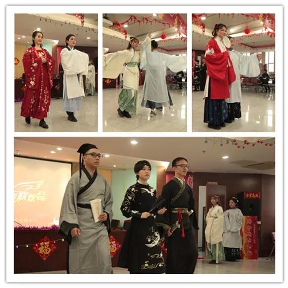 联欢会上,有动人的舞韵瑜伽、古风走秀、手影舞,还有欢快的情歌对唱