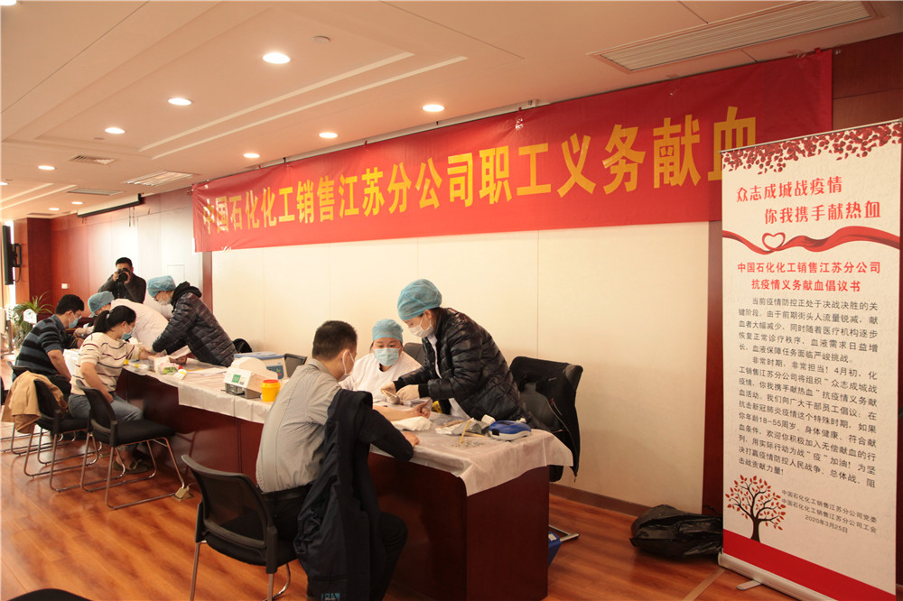 3月下旬,中国石化化工销售江苏分公司党委、工会共同发出热血战“疫”的倡议,得到了大家的踊跃响应。当日上午,员工们早早来到献血点报到,间隔式填写征询表、体检、初筛,献血活动有条不紊地进行着。