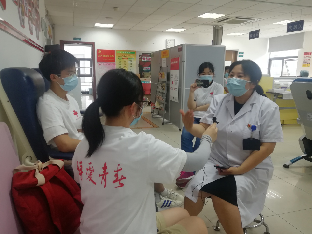 参观结束以后,志愿者代表根据前期收集到的公众对无偿献血公益事业关注度较高的热点问题向血液中心工作人员进行了访谈,现场录制了访谈素材,后期将制作成短视频在校内外开展无偿献血公益宣传。访谈中,志愿者代表对血液中心的热情接待以及耐心细致的讲解表示衷心的感谢,通过参观访谈活动同学们收获很大,学习到了很多新的知识,对无偿献血公益事业的意义有了非常感性的认识。作为学校红十字会的志愿者,今后会将参访中学习到的知识消化整理,更加积极的开展无偿献血宣传招募服务工作。