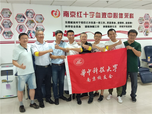 2020年8月27日,华中科技大学南京校友足球队一行冒着酷暑来到南京红十字血液中心参加无偿献血。