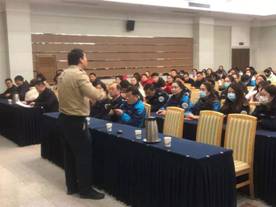 整个活动共分为消防安全知识讲座和消防演练两个模块。知识讲座中,吴教员结合最近发生的火灾火情案例向我们讲解了如何有效使用应急物资自救,同时也将我们一些错误的灭火方法进行了纠正。