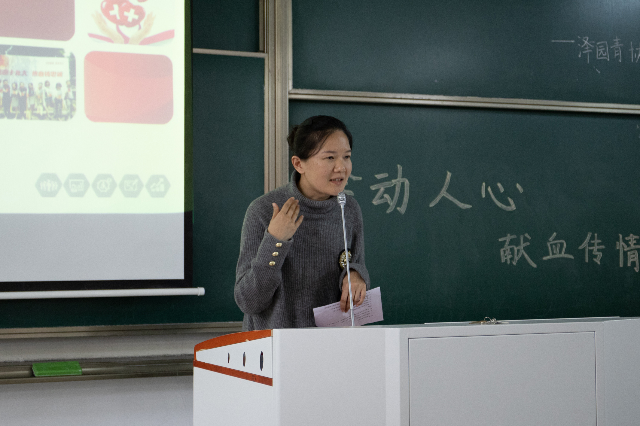 能容纳140人的教室里座无虚席,红色的“无偿献血宣传进高校活动”横幅格外醒目。业务办公室赵轶伦主任为同学们介绍了无偿献血工作发展历程,血液健康知识以及无偿献血相关优待激励政策,针对社会上对无偿献血的常见误区和错误观点给予了正确阐述。她还介绍了血液中心志愿者团队的相关情况,鼓励同学积极参加无偿献血,加入无偿献血志愿服务工作行列。