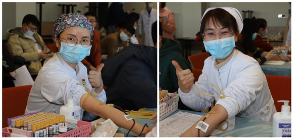 除了自发前来的医务人员,还有整支“部队”组团来献血。