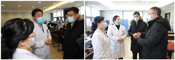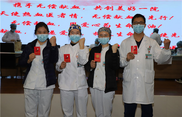 南京市第一医院副院长赵太宏、党委委员黄晓萍、保健处处长陈小兰,南京红十字血液中心主任张春、副主任戴宇东一同来到献血现场,慰问献血的医务人员。