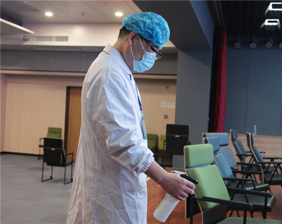 为做好疫情防控,血液中心的工作人员也是早早来到医院布置现场、进行消杀,最大限度保障参加献血者及献血工作人员的安全。