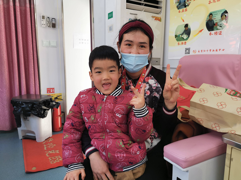 春节期间,在新百献血点,来自徐州的姚志丹特意带着5岁的儿子来陪她献血,“我想让儿子看到一个勇敢的妈妈。”而身旁的儿子立马贴着姚志丹的脸说:“妈妈,好勇敢!”对于经常献血的姚志丹来说,献血是一件很平凡的事,在她的影响下,她的姐姐和妹妹也加入了无偿献血的队伍中来,姚志单语气坚定地说:“健康人群都应该有意识地参与献血,相信有了第一次尝试,你会发现‘分享生命’是一件很快乐的事。”