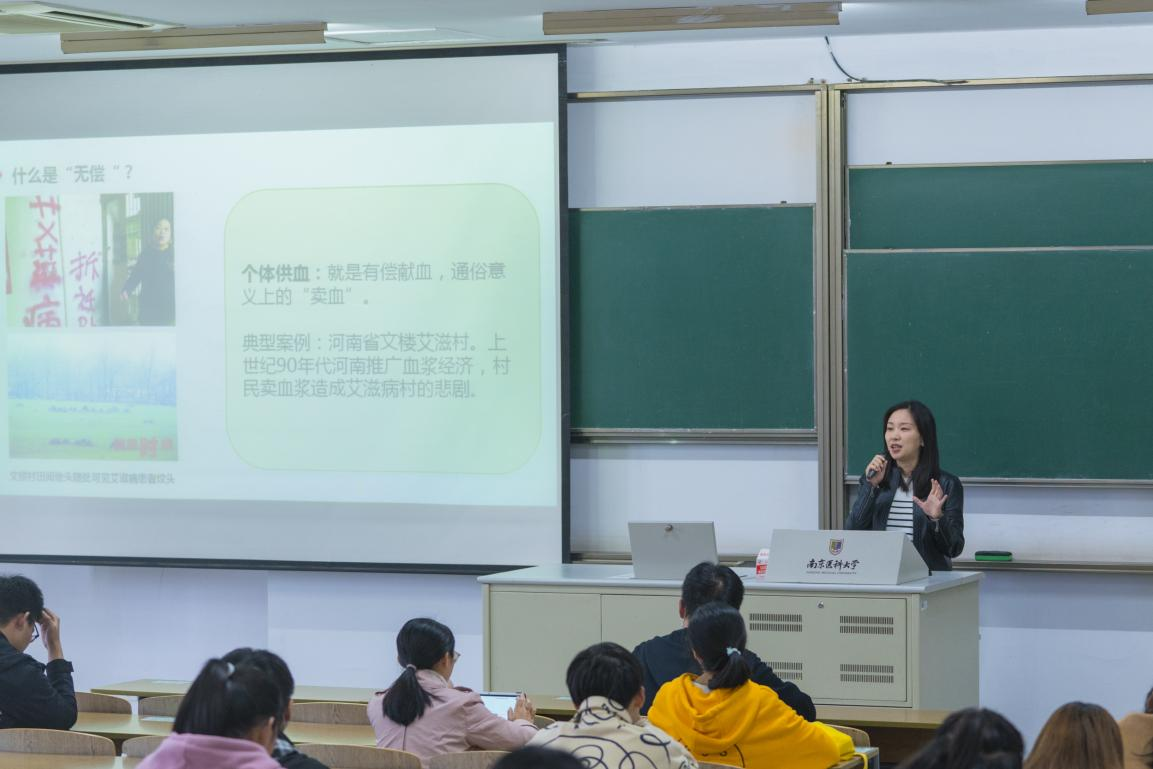 唐亚丁介绍了南京市红十字会无偿献血志愿服务工作者协会的创建背景,协会的品牌服务,志愿服务的激励和表彰政策,展示了志愿者的风采。鼓励同学们积极加入无偿献血志愿服务工作行列。