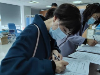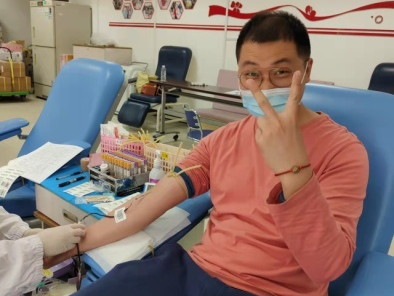 在血液中心工作人员的指导下,大家有序地进行着填表、体检、化验、抽血,一道道程序之后,终于拥有了第一张2022年最温热的小红卡! 工银安盛江分热血小队党支部的高茜,认真填写表格,她说“献血不只是年轻人的事,爹娘给了强健的体魄,要为社会多做贡献!”抽血时血流速度不给力,她说从现在起要督促自己多喝水。 回忆起第一次献血经历,来自工会委员会的蔡冉说,“第一次献血是碰巧看到献血车写着今日缺A型血,而自己正好是A型血,想着可以帮助到有需要的人就上车了,之后每年都会去, 今年是第四个年头啦!”先前还担心出差在外赶不上单位集体活动的她,二月底就开始询问今年的献血活动安排,早早做好了工作安排。 来自团支部的张娜,每年都参与单位组织的无偿献血活动,前段时间因疫情一直留在苏州,这两天苏州成功摘星,正好赶上单位今年的集体活动,她当天从高铁站直奔血液中心,大家笑称她“坐高铁来献血”。 来自后援部门的骆红,测量时低压有点高,但是不想放弃,休息再测量后,终于低压降下来了,顺利献血,大家都笑称她献血的决心异常坚定。“每次过生日就想一定要去献血纪念一下,正好单位组织了,不用考虑了肯定得去。”她认真又坚定地说道,“献血这件事我其实没想过有什么煽情的意义,第一次献完血没多久收到血液中心的短信,大致意思是我的血液将用于救治病人,那个时候才真切感受到意义,感觉我对于这个社会还是有那么一点用处的,作为一个普通人,在一些力所能及的事情上就尽量去做。” 这位害羞不敢看镜头的小哥,是来自业务部门的高序林,他向我们展示第一次献血是2012年,今年是2022年,正好是十个年头,他笑着说这也算得上是和无偿献血这件小事的“十年之约”了。 对着镜头比“耶”的唐彬,来自后援部门,今年是他第四年献血了,被问及献血经历他告诉我们,“第一次献血是大一看到献血车来学校,血液沸腾就上车贡献了200毫升,争取在退休前贡献满4000毫升!” 此次无偿献血活动受到广大职工的积极响应,还有好多因工作安排没能赶上单位集体活动的职工,纷纷表示自行前往继续献出爱心,企业有担当,员工有力量!