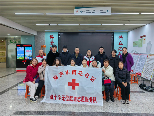 为缓解临床用血需求压力,宣传无偿献血精神,2月12日,雨花台区无偿献血服务队的25名队员来到了南京红十字血液中心的机采大厅,这是他们近期举行的第三次无偿献血活动,此次活动19人成功献血,总计捐献35个单位。