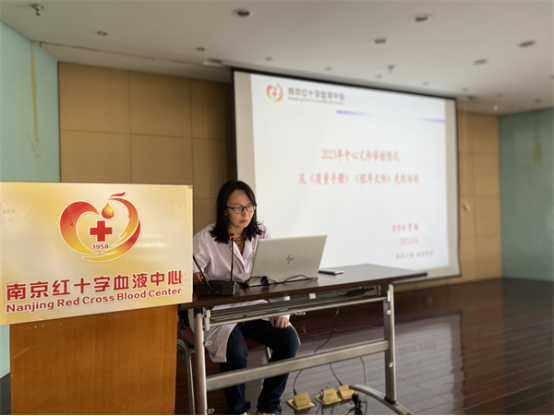 为始终保障血液质量安全,有效满足中心质量目标及方针,不断提升质量管理体系的适宜性、充分性和有效性,中心质量管理文件一直持续改进。2023年3月16日下午,由质管科科长贾璐为中心员工作《2023年中心文件审核情况及<质量手册><程序文件>更改培训》,这也是疫情后中心开展的首次线下全员培训。