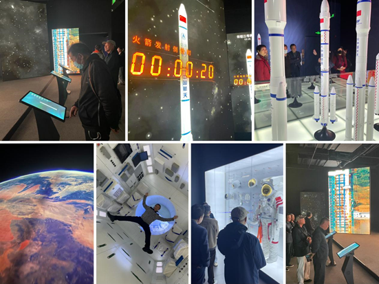 活动伊始,老同志们率先参观了充满未来感的无穹航天科技馆。这里展现的是人类探索宇宙的无限遐想与科技成就。从古老的飞天传说,到长征系列火箭模型,再到中国空间站的核心舱体验,老同志们跟随历史的脚步,开启了一场奇妙的太空之旅。逼真的场景和有趣的互动让老同志们仿佛重返青春,激发了大家好奇与探索的欲望。他们热烈讨论着国家航天事业日新月异的发展,脸上洋溢着自豪与喜悦的笑容。