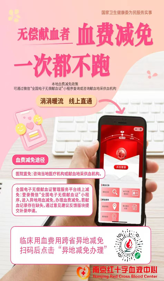 为持续优化无偿献血服务流程,提升献血者体验,国家卫生健康委明确将“推进‘血费减免一次都不跑’,便捷献血者异地办理血费减免”列为2025年全系统为民服务8件实事之一。