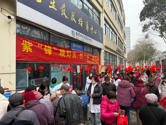 为大力弘扬雷锋精神和志愿服务精神,在第63个学雷锋纪念日来临之际,3月3日下午,中心党委组织党员、团员志愿者走进紫竹林社区,开展以“紫‘锋’映灯火‘竹’宁满元宵”为主题的学雷锋便民服务日活动。