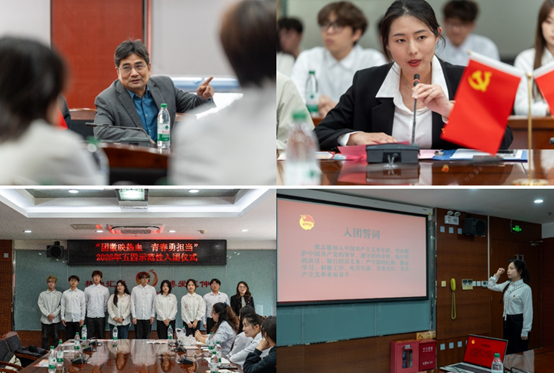 在深入了解血液中心发展历程后,仪式进入关键环节——佩戴团徽、庄严宣誓。新入团的同学们佩戴团徽、面向团旗宣誓,以青春之名立下铮铮誓言。在旋律激昂的团歌中,本次五四示范性入团仪式圆满落幕。